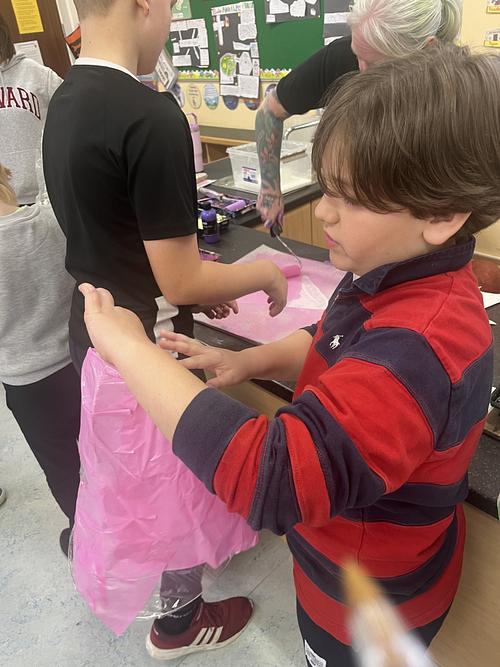 Above are some photos of our 6th class reading letters, which were written to them by their grandparents, about their school days.
