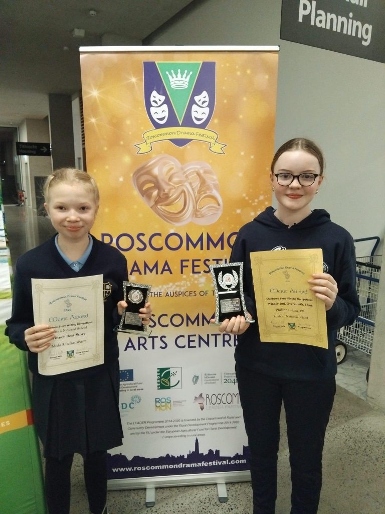 Congratulations to our 6th class pupils, Meda and Philippa, who won prizes in the Drama Festival Essay Writing Competition. They received their prizes yesterday evening in Aras an Chontae at the official launch of the Drama Festival. Well done girls 🖤🧡